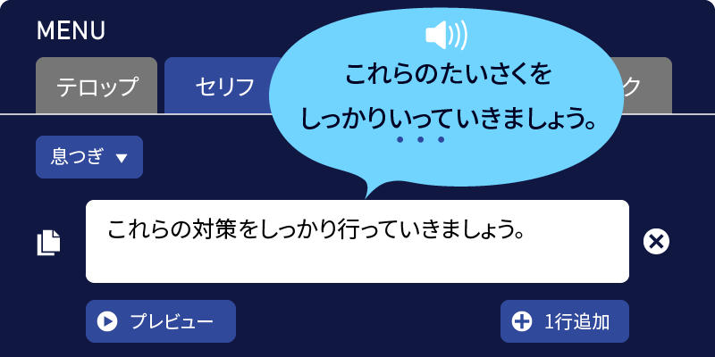 テロップはそのままに、「セリフ」の「行って」の部分をひらがなに変更します。そうする事で、「おこなっていきましょう」と読ませる事ができます。