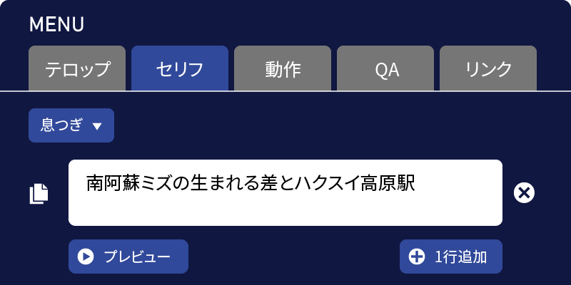 テロップはそのままに、「セリフ」で「みず」の部分をカタカナに変更します。また「里」をあえて、当て字にし「差と」と変更、さらに「白水」をカタカナに変換します。そうする事で自然な読み方になります。